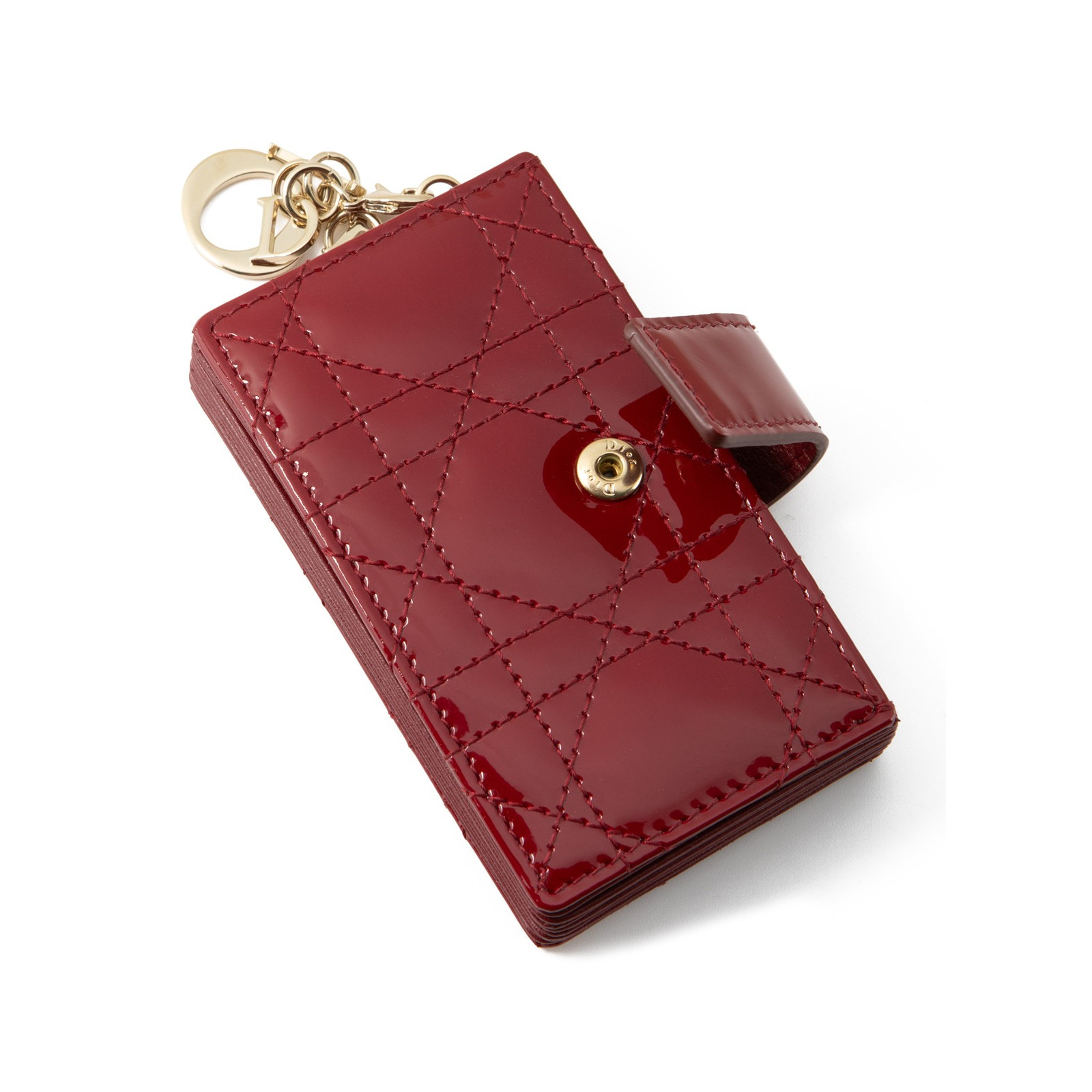 DIOR Kartenetui in Cannage Steppung aus rotem Lackleder.