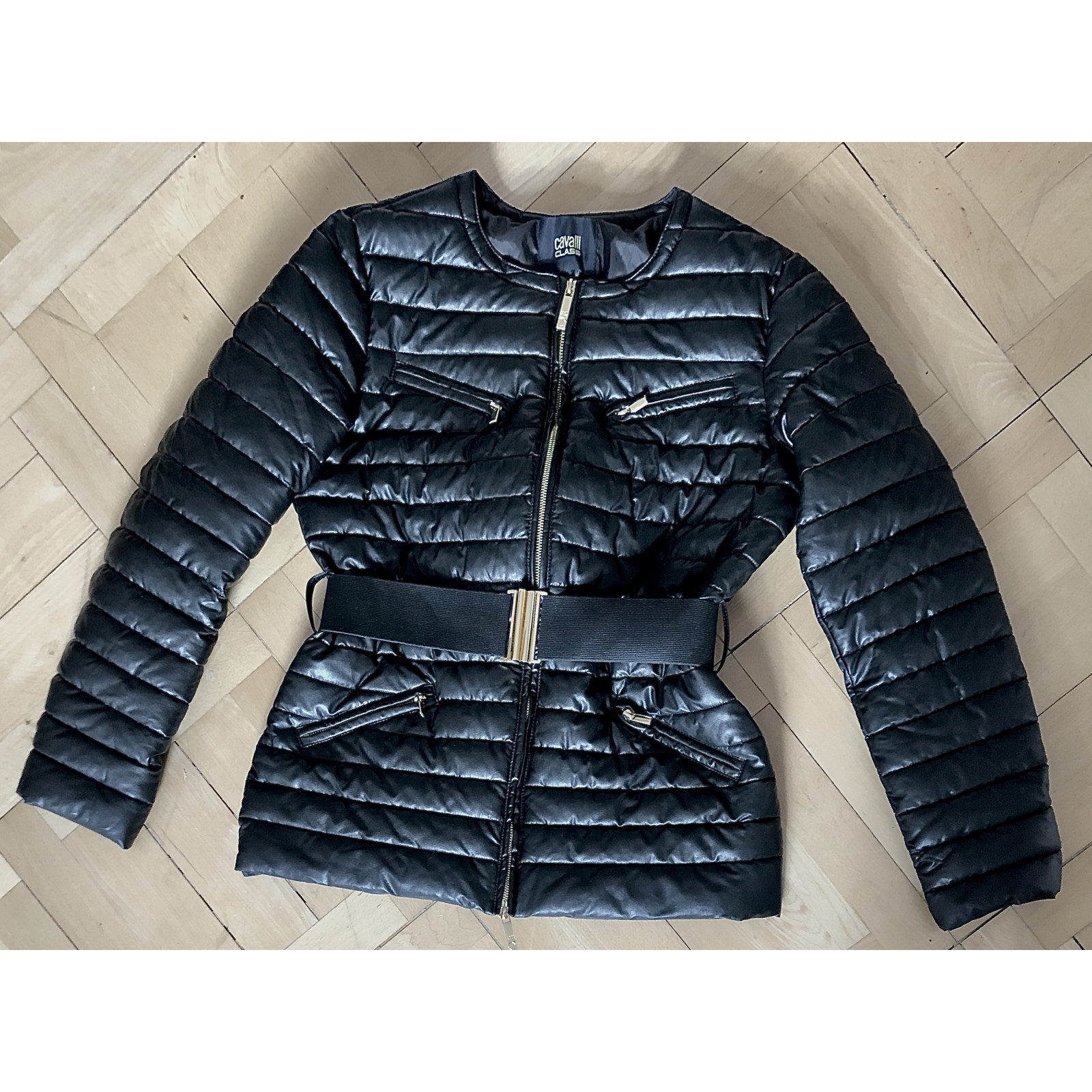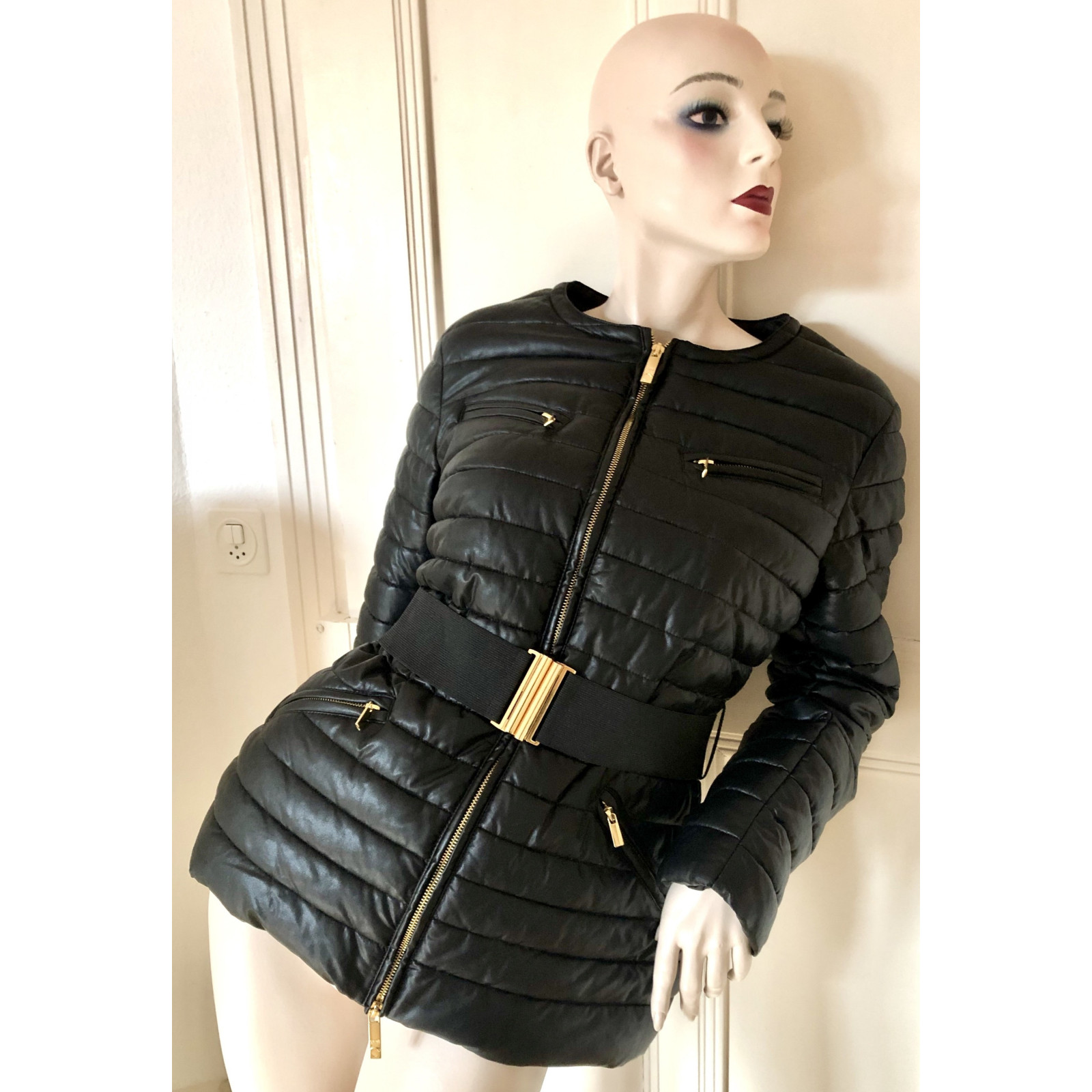 Schwarze Winterjacke Grösse 40 in schwarz. Neu und ungetragen. Goldene Reissverschlüsse und Gürtelschnalle. 100% Polyamid Waschbar bei 30 Grad