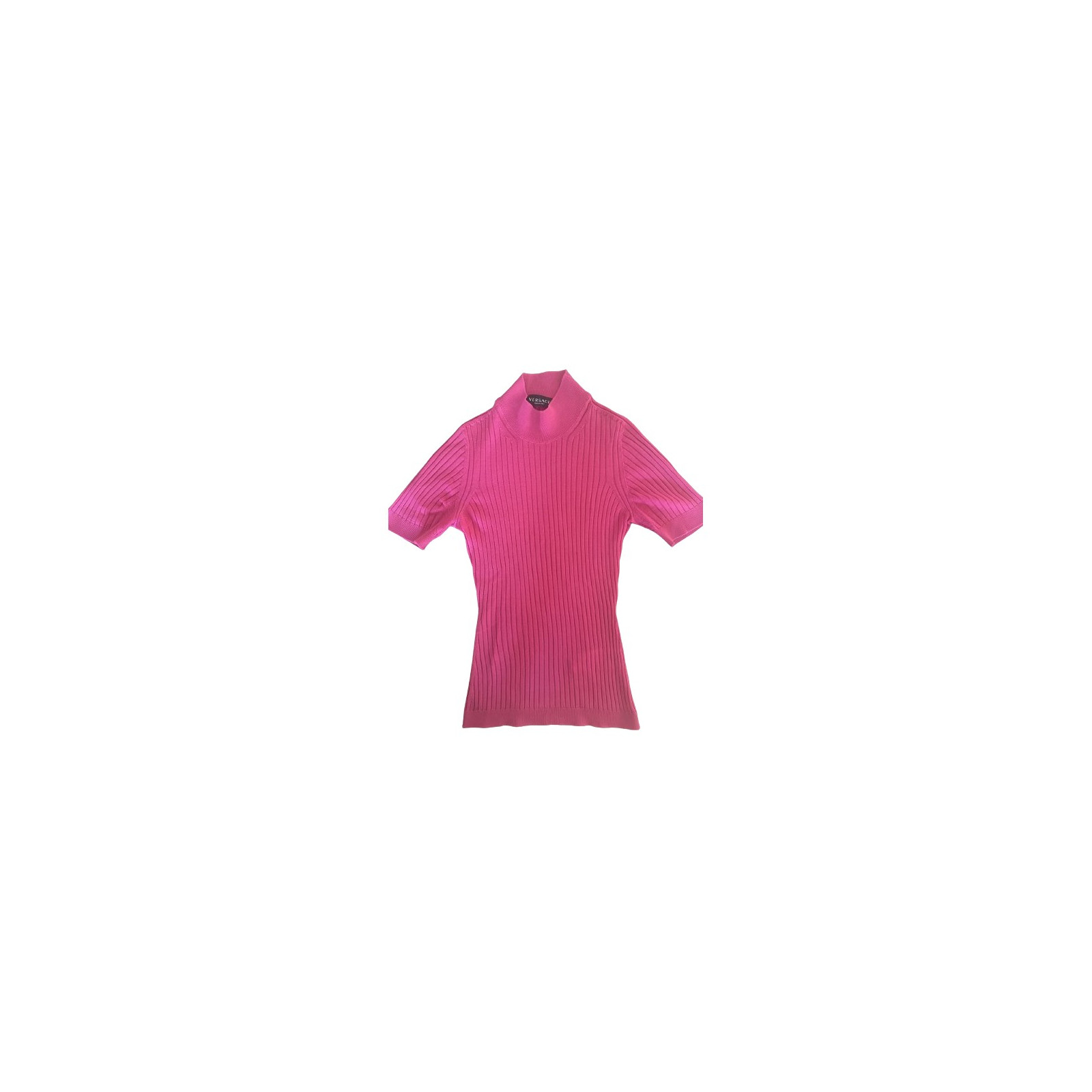 VERSACE Fuchsia pink ribbed-knit short-sleeve top,