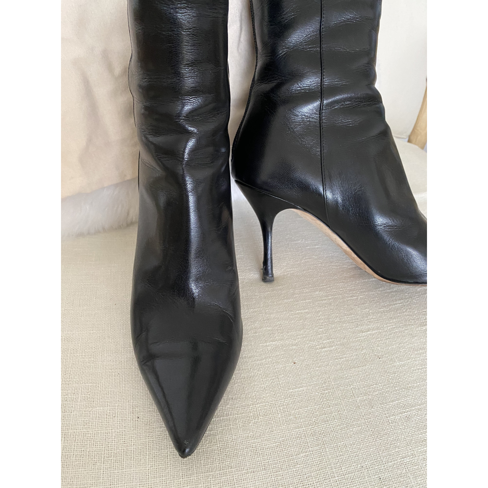 Schwarze Damenstiefel aus echtem weichem Leder, Größe 38