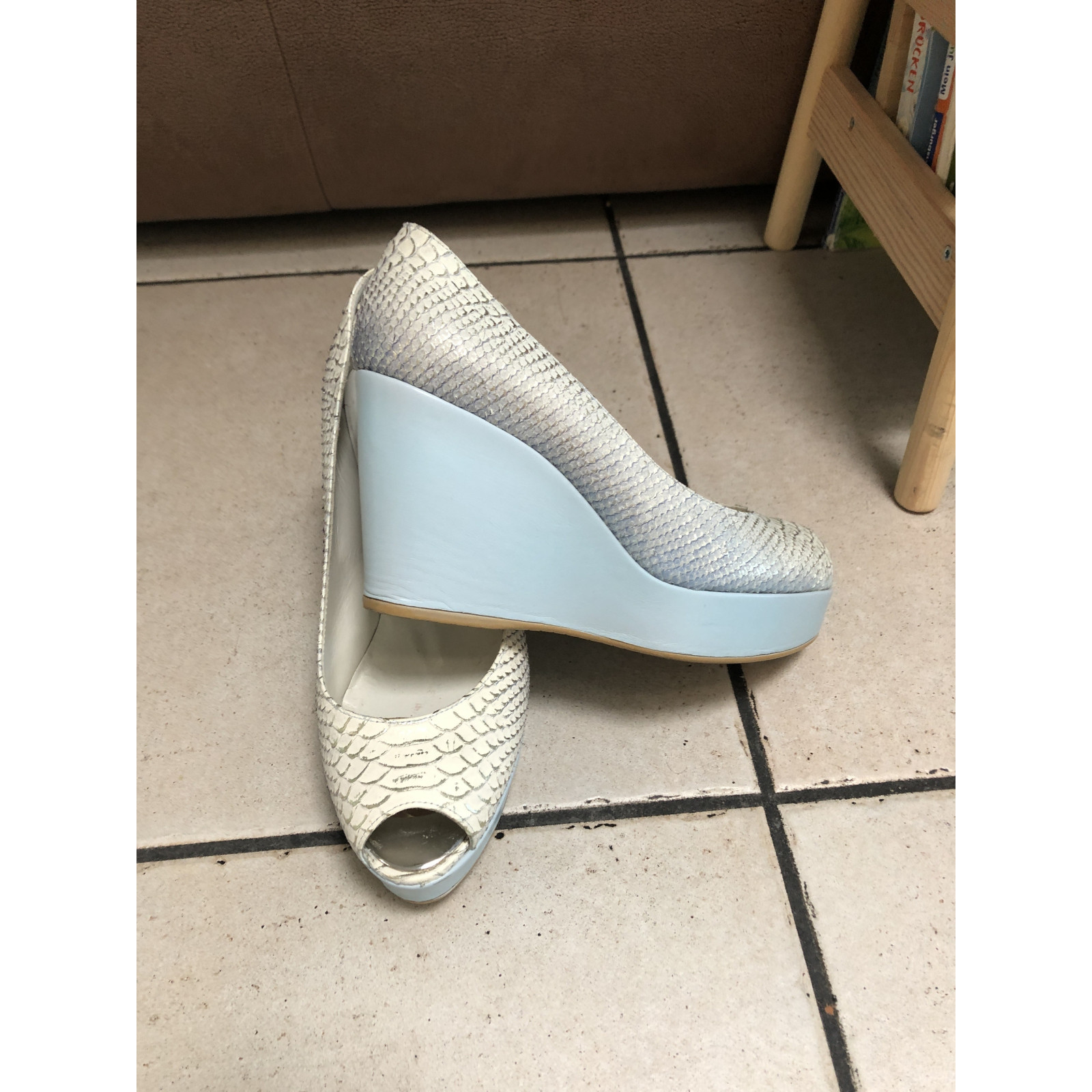 Hübscher Peeptoe in Fischgräte Optik, verlaufend weiss blau