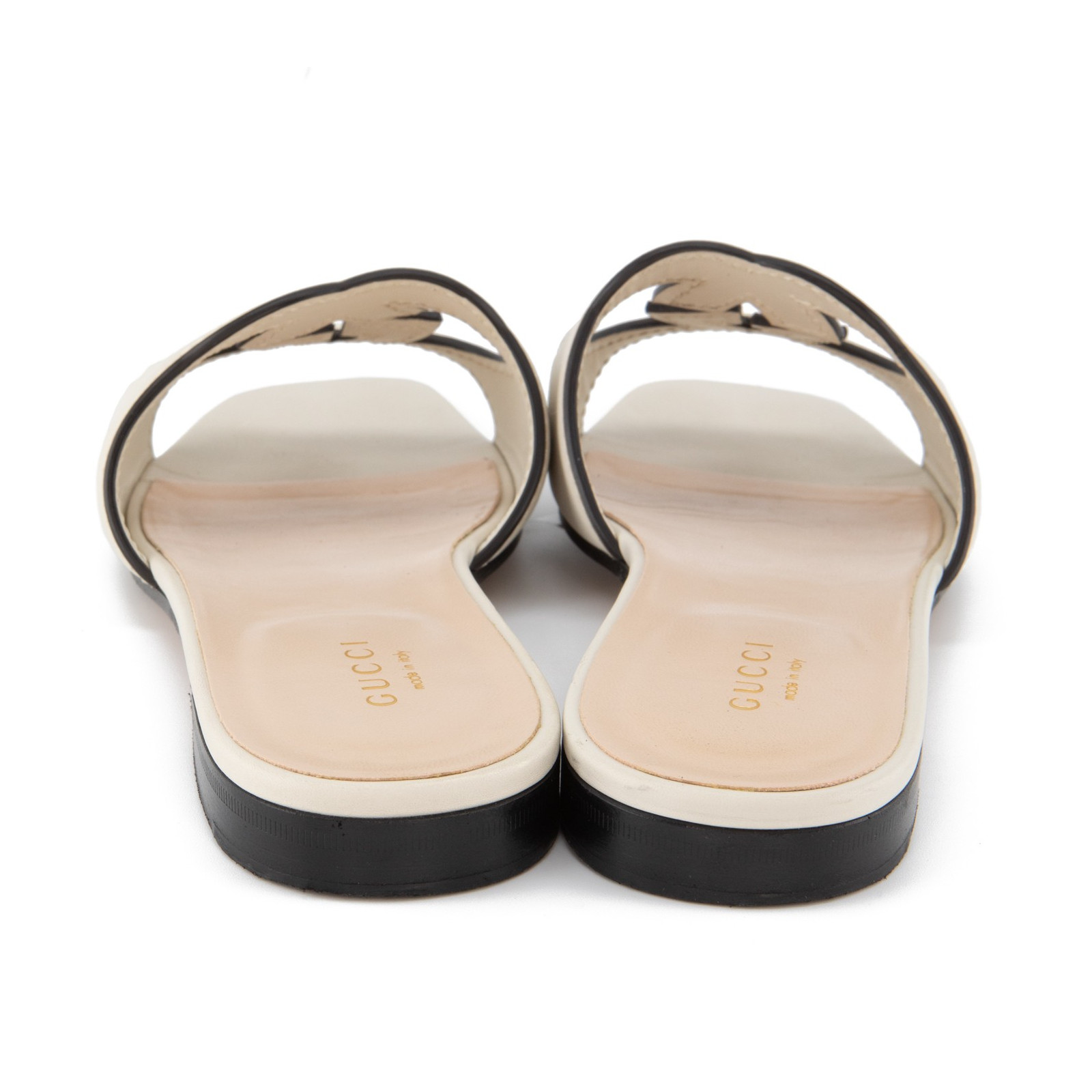 GUCCI GG Sandalen aus Leder in off-white mit Ledersohle.