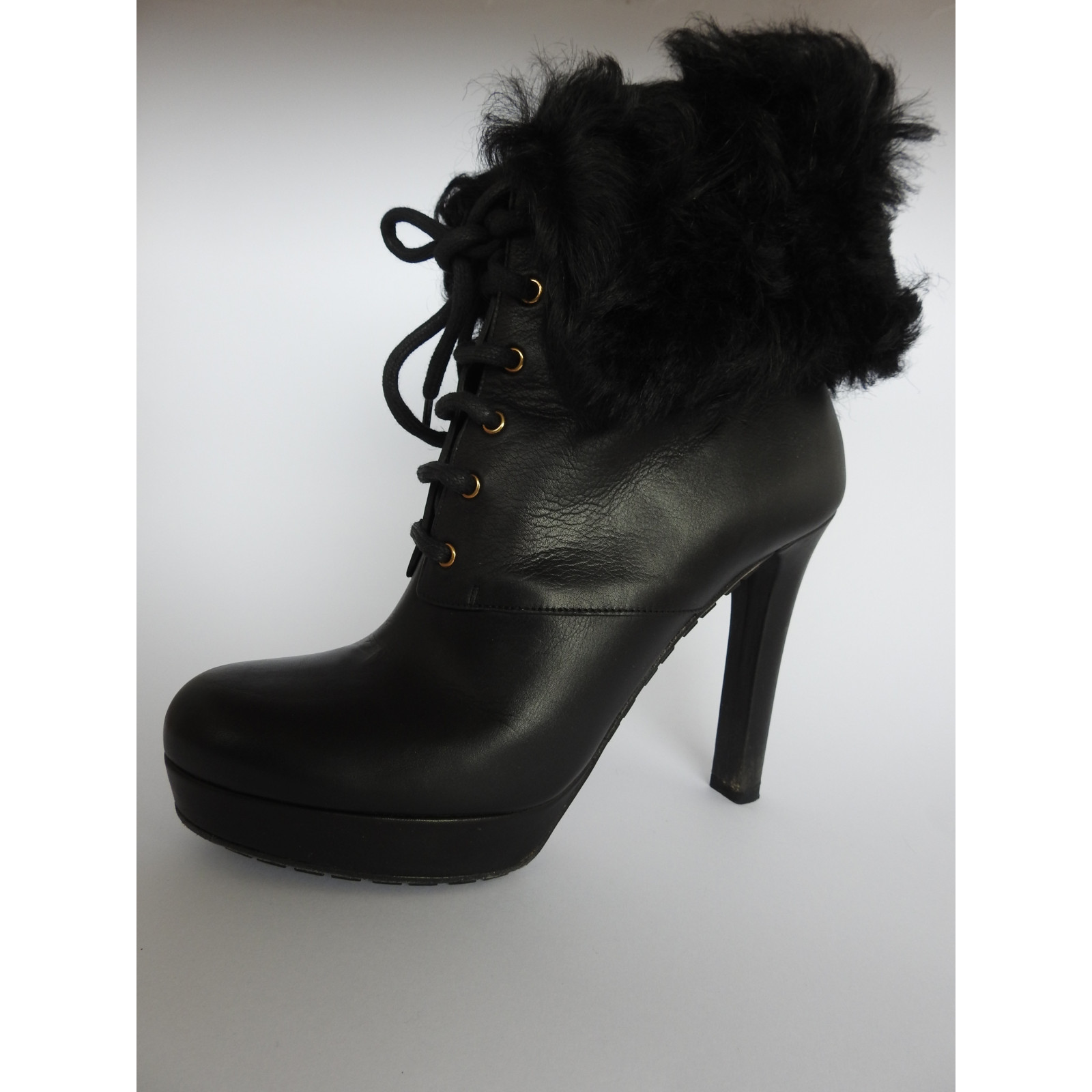 Schnürsenkel Leder / Lammfell Gucci Logo am Stiefel Gebrauchsspuren: Beim hinteren Absatz linke Seite eine Eindruckstelle, ansonsten einwandfreier Zustand