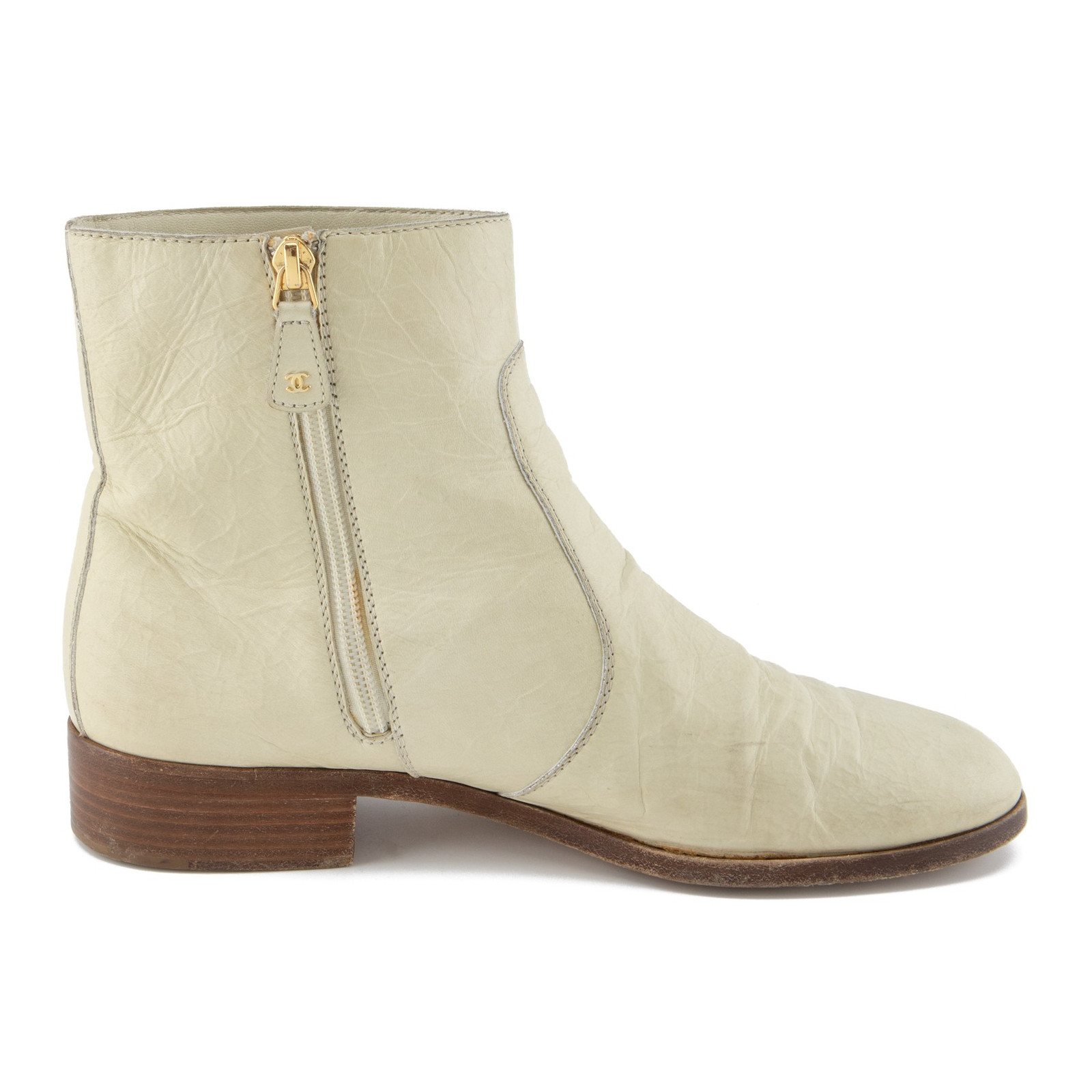 CHANEL Ankle Boots aus cremefarbenem Leder