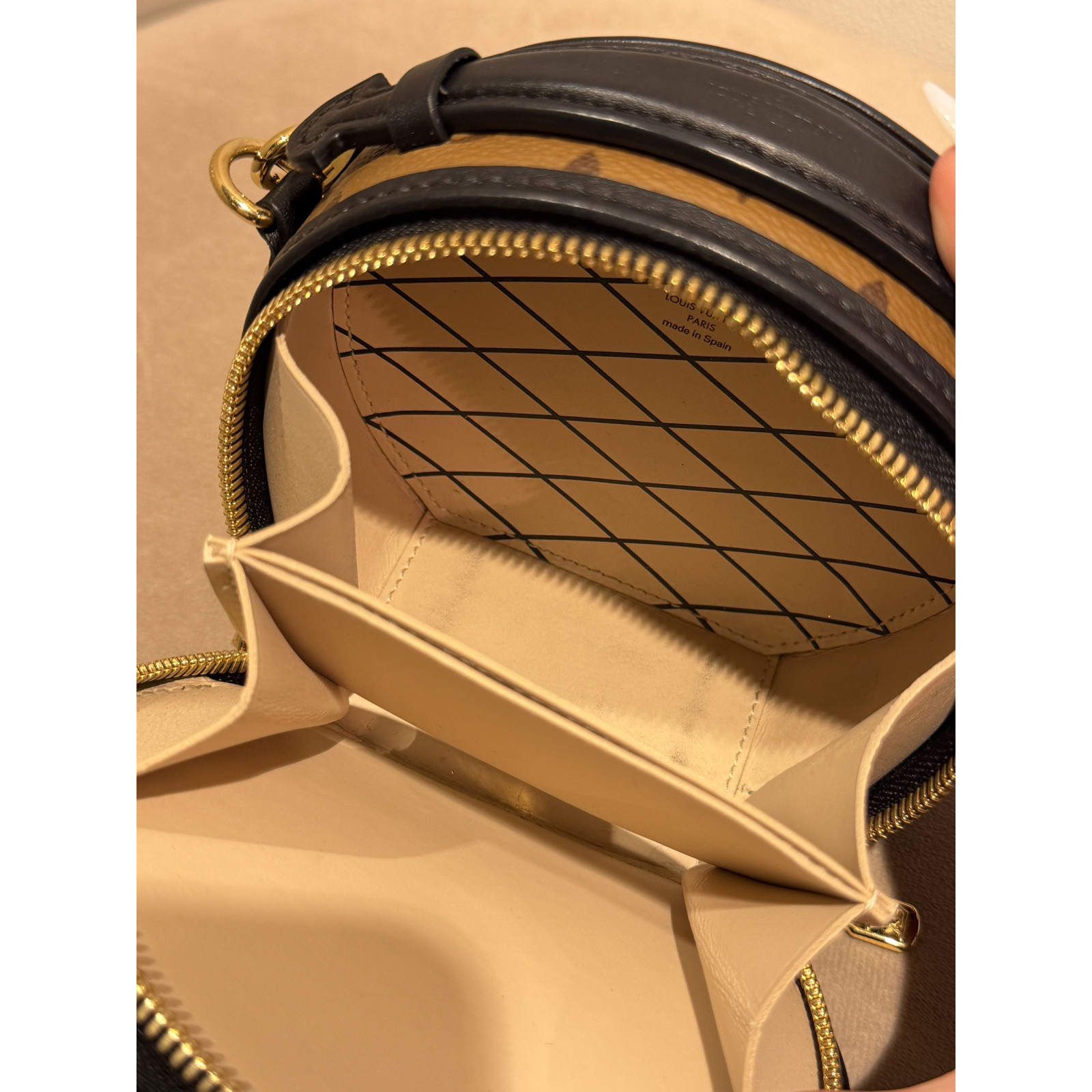 LOUIS VUITTON Mini Boîte Chapeau aus Reverse Monogram Canvas aus dem Jahr 2022, ein elegantes, strukturiertes Design, inspiriert von den ikonischen Hutschachteln von LOUIS VUITTON.
