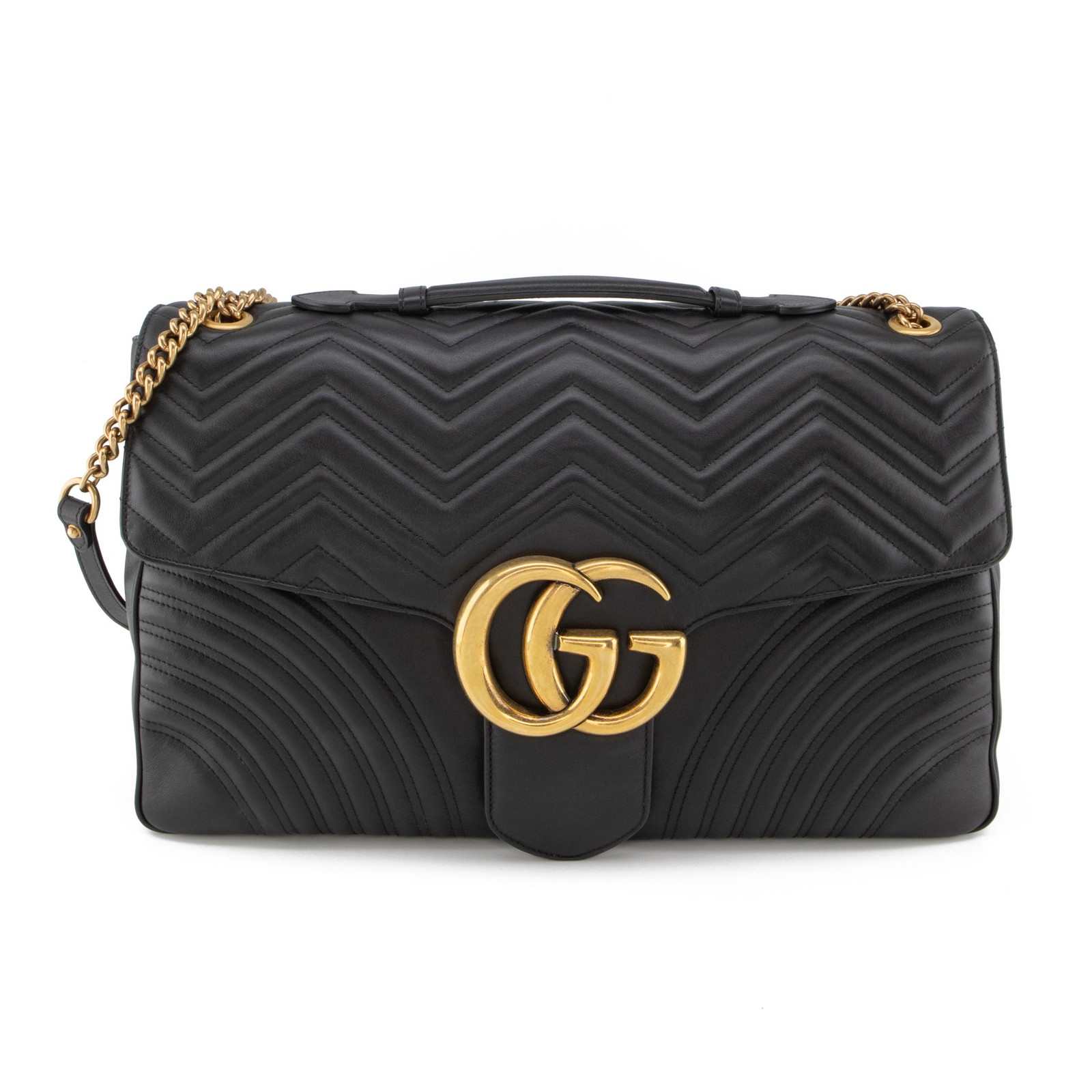 Oversize GUCCI GG Marmont Bag large aus schwarzem Leder