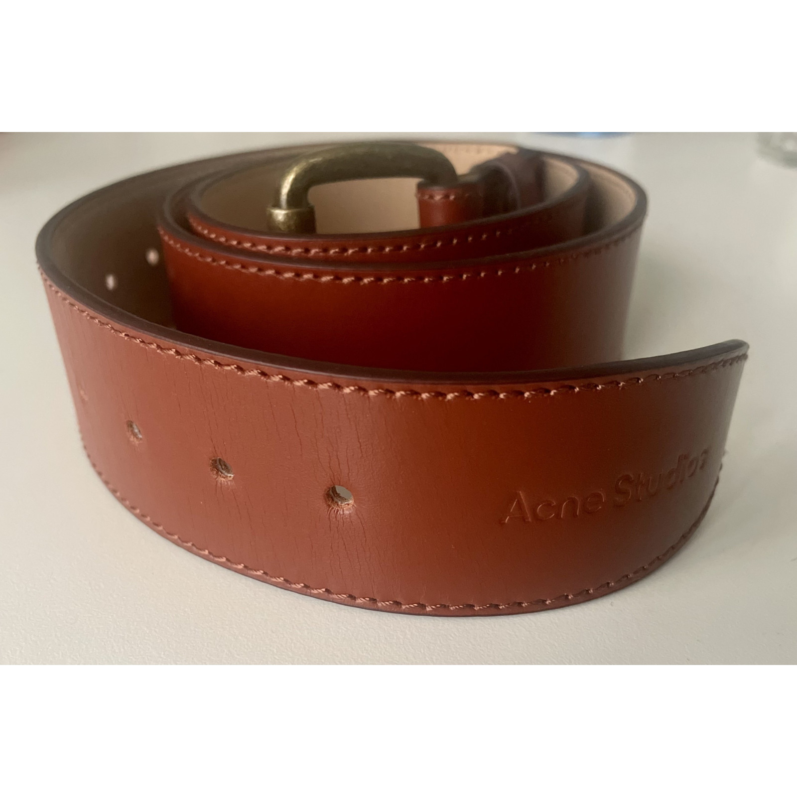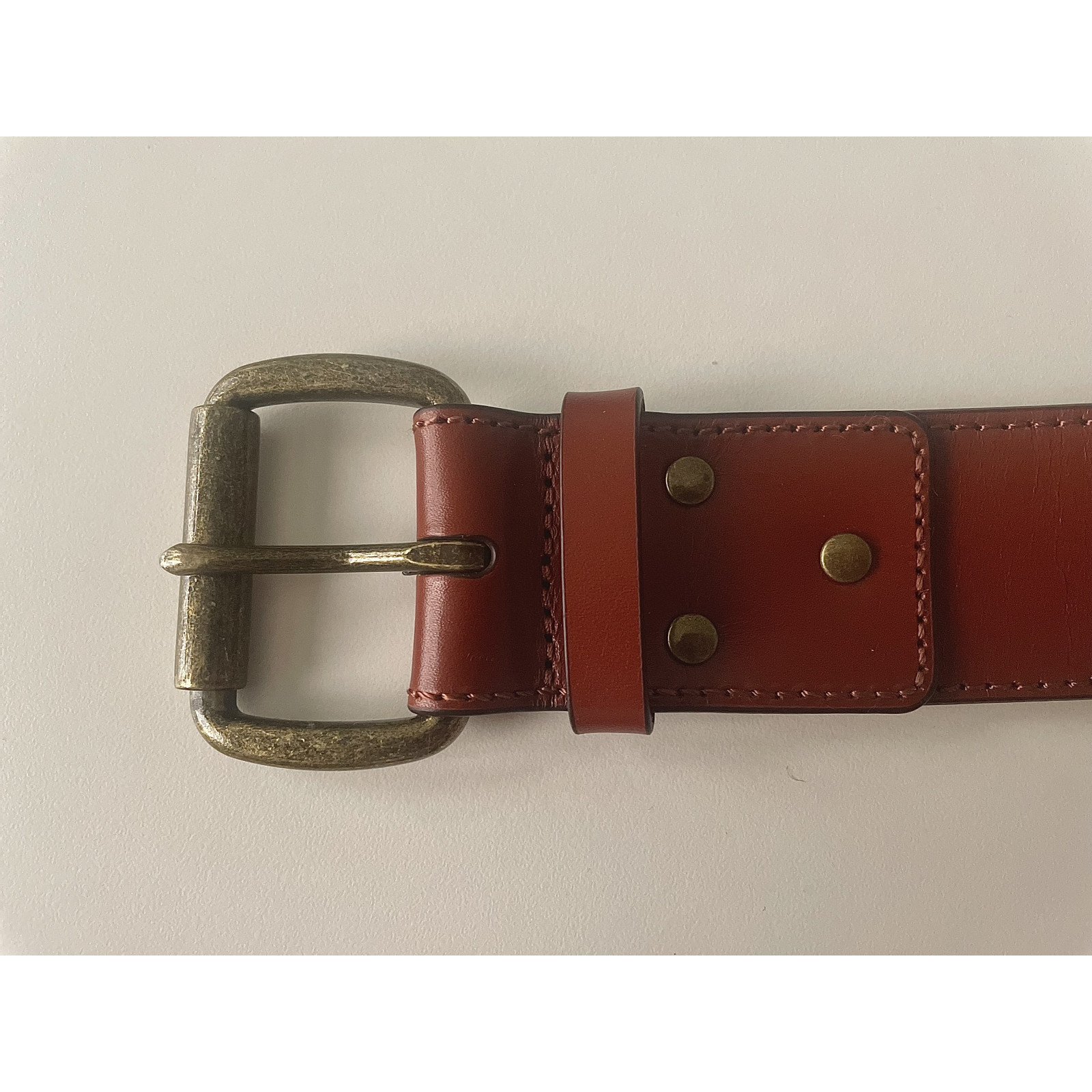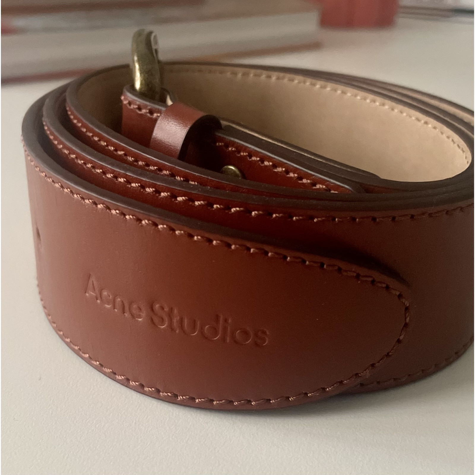 This brown women's belt from Acne Studios is made of genuine brown leather with a vintage - style gold buckle. The logo is embossed directly into the leather on the outside (and therefore appears in the same shade of brown as the belt). Condition: The belt was only tried on briefly once, but never worn. The original price was CHF 270. Total belt length: 110 cm. Width: 4 cm.