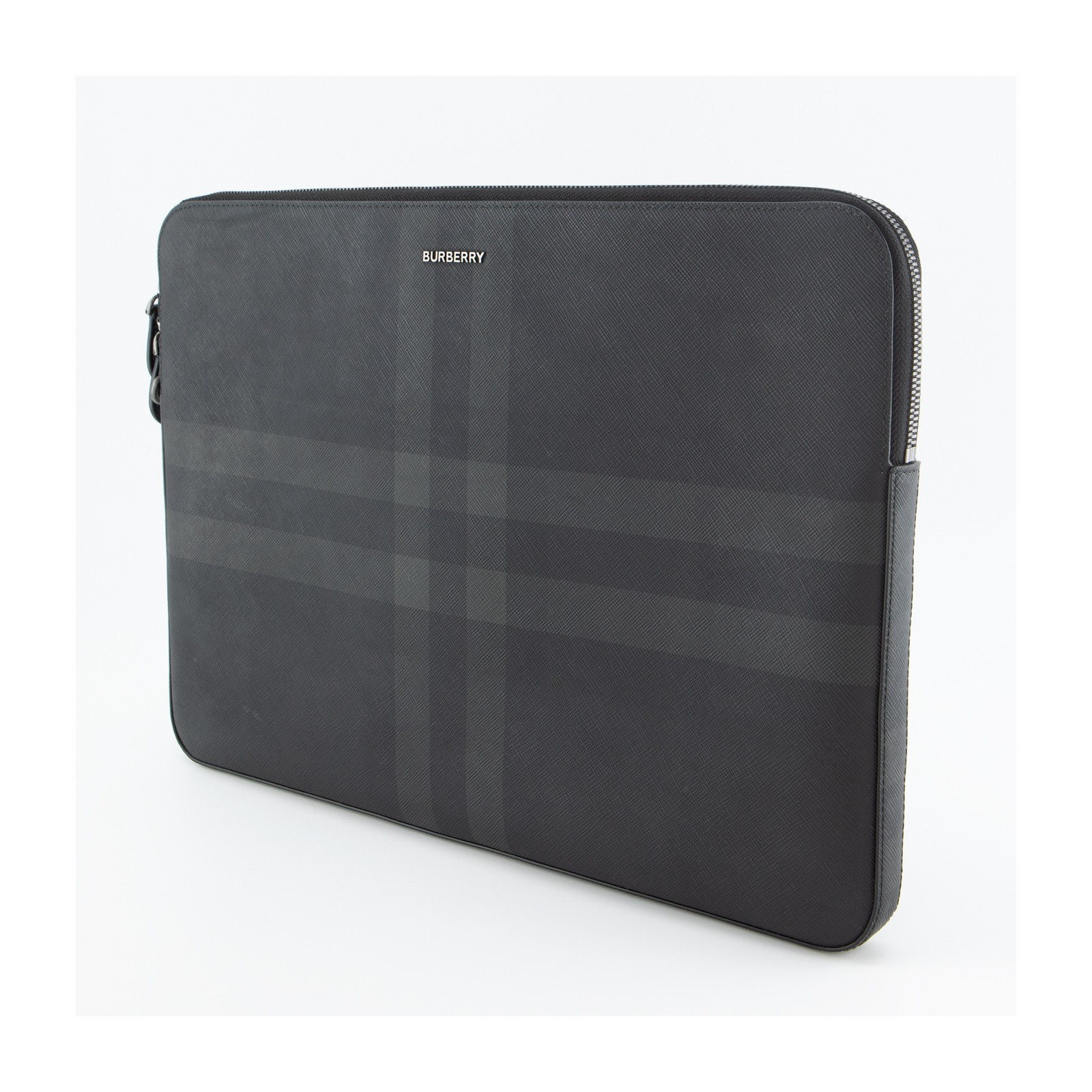 BURBERRY Laptop Case in grey - black checkered pattern.