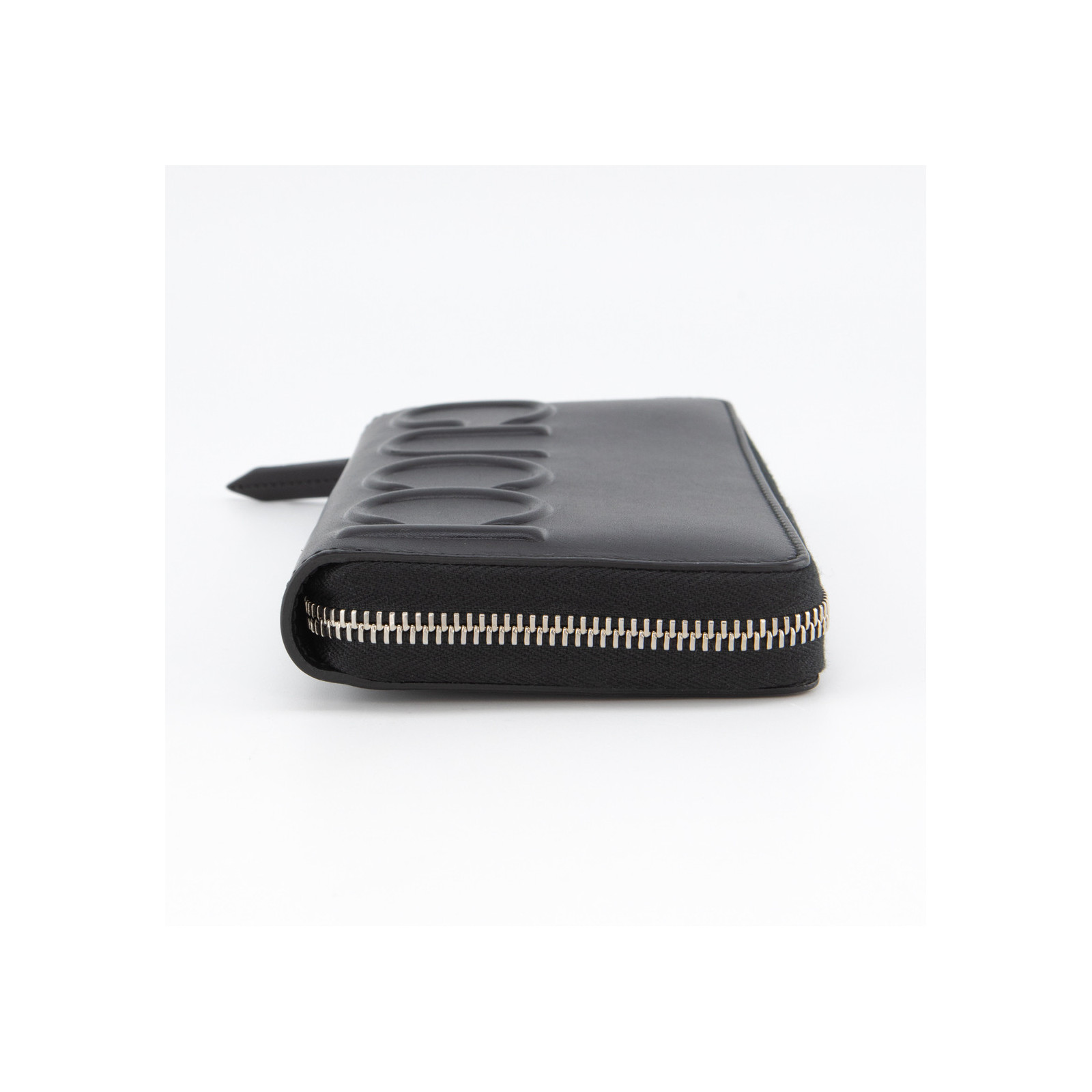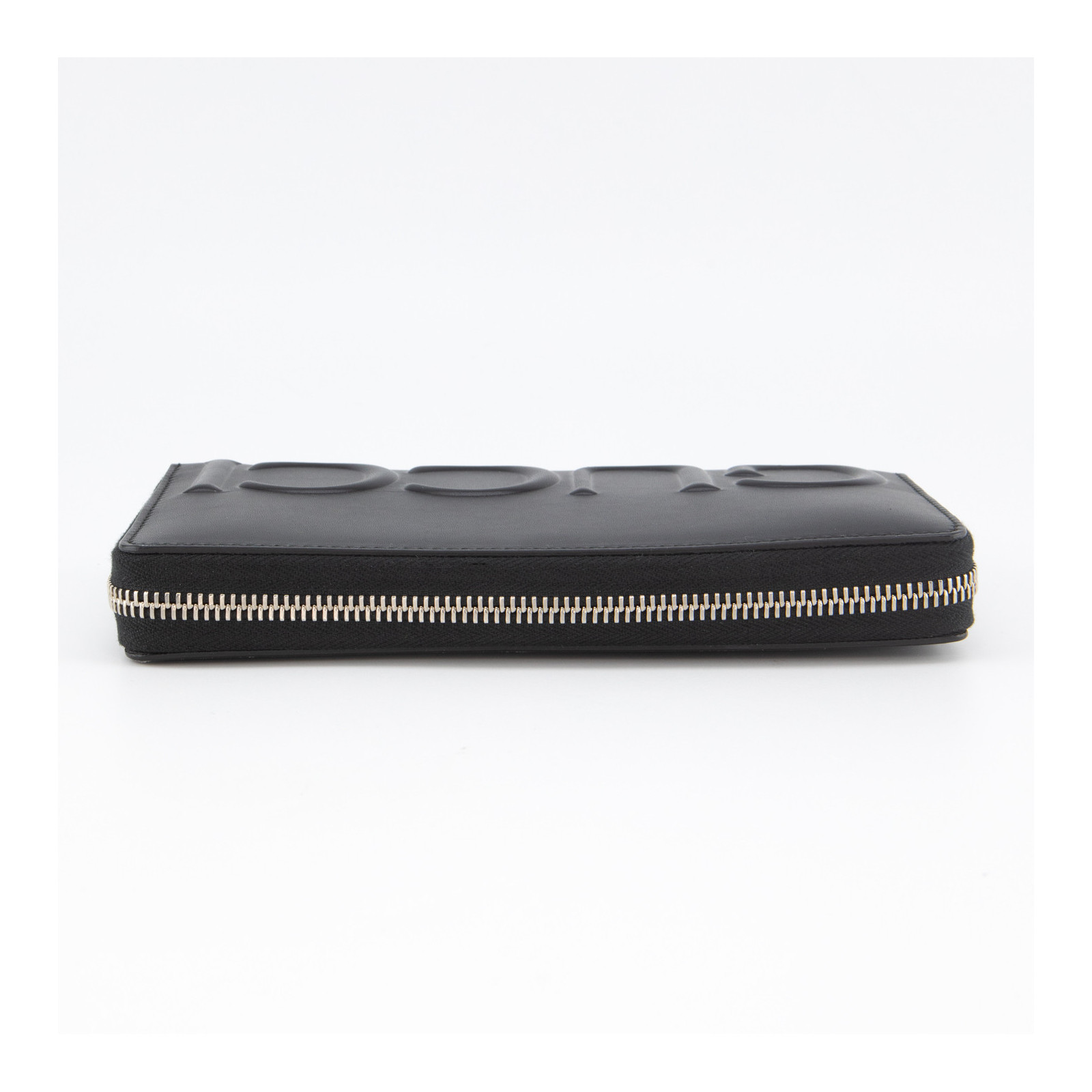 Made of black calfskin with a wild boar print embossed on it.