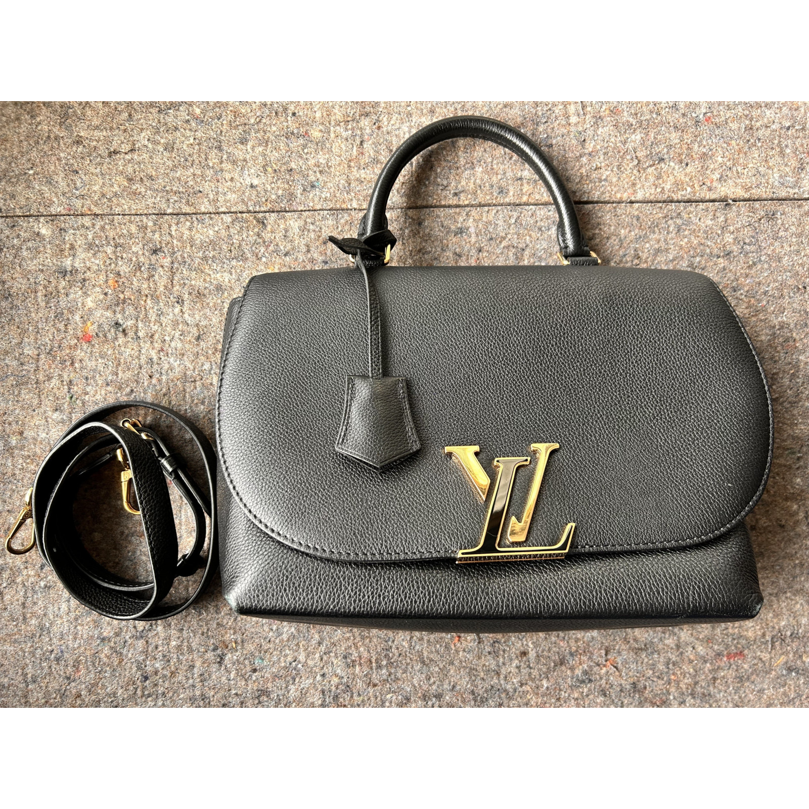 LOUIS VUITTON - Taurillon Volta Handbag (2019-2020) Black Taurillon span leather, black Alcantara span lining, gold logo and black enamel, key ring, rolled handle and adjustable shoulder strap, one exterior pocket, two interior pockets, snap closure, LV logo plaque Dimensions: 29 cm x 25 cm x 12 cm Louis VUITTON Volta handbag in Taurillon leather with shoulder strap, black leather and black lining. The bag is in very good condition with minimal signs of wear on the exterior, which are only visible upon close inspection (see photos). The interior lining is immaculate. Beautiful, soft leather inside and out, one side pocket on the back, two interior pockets, one of which has a gold zipper. Gold-colored hardware, decorative span or key ring on the handle. A true gem. Original price approx. 4300 CHF.