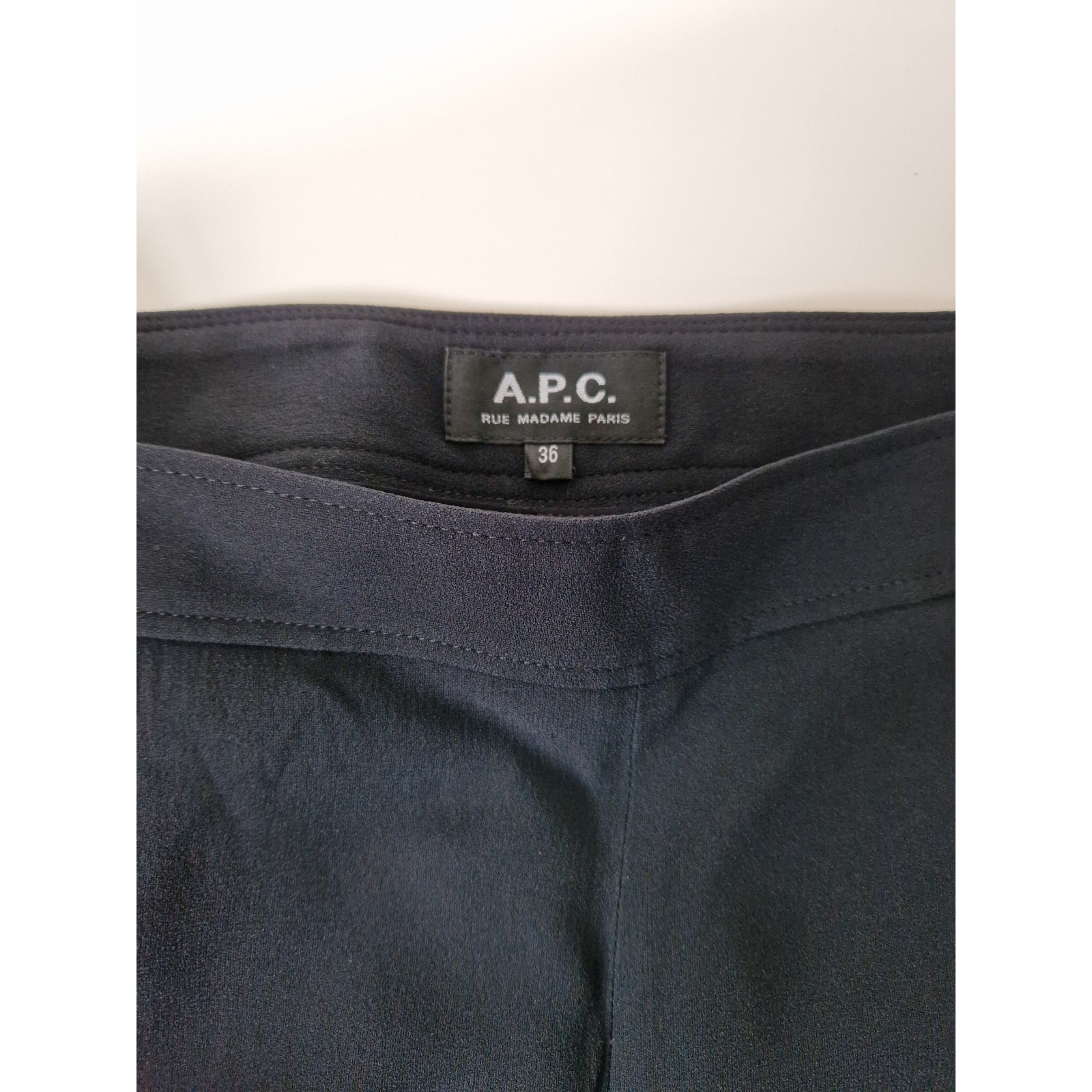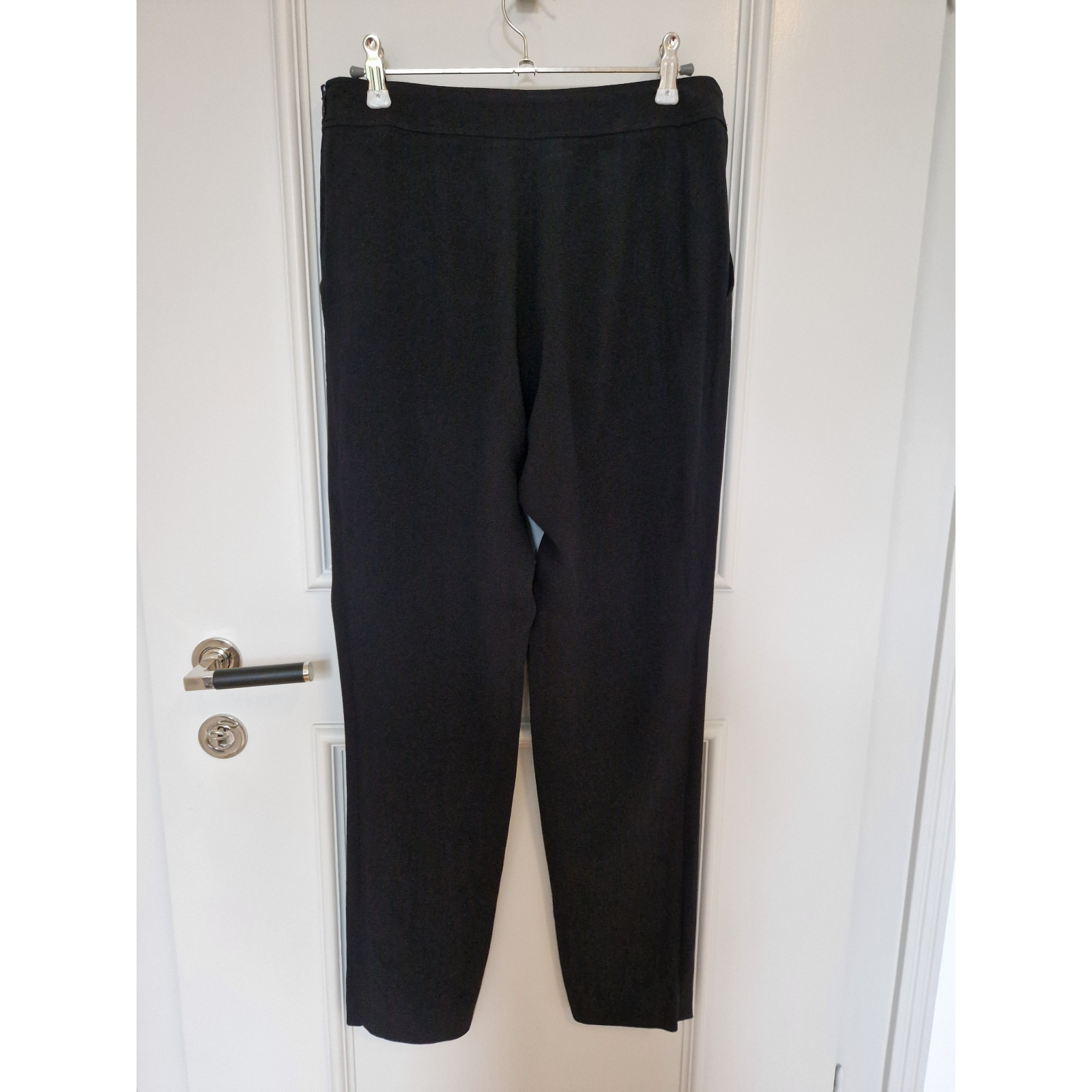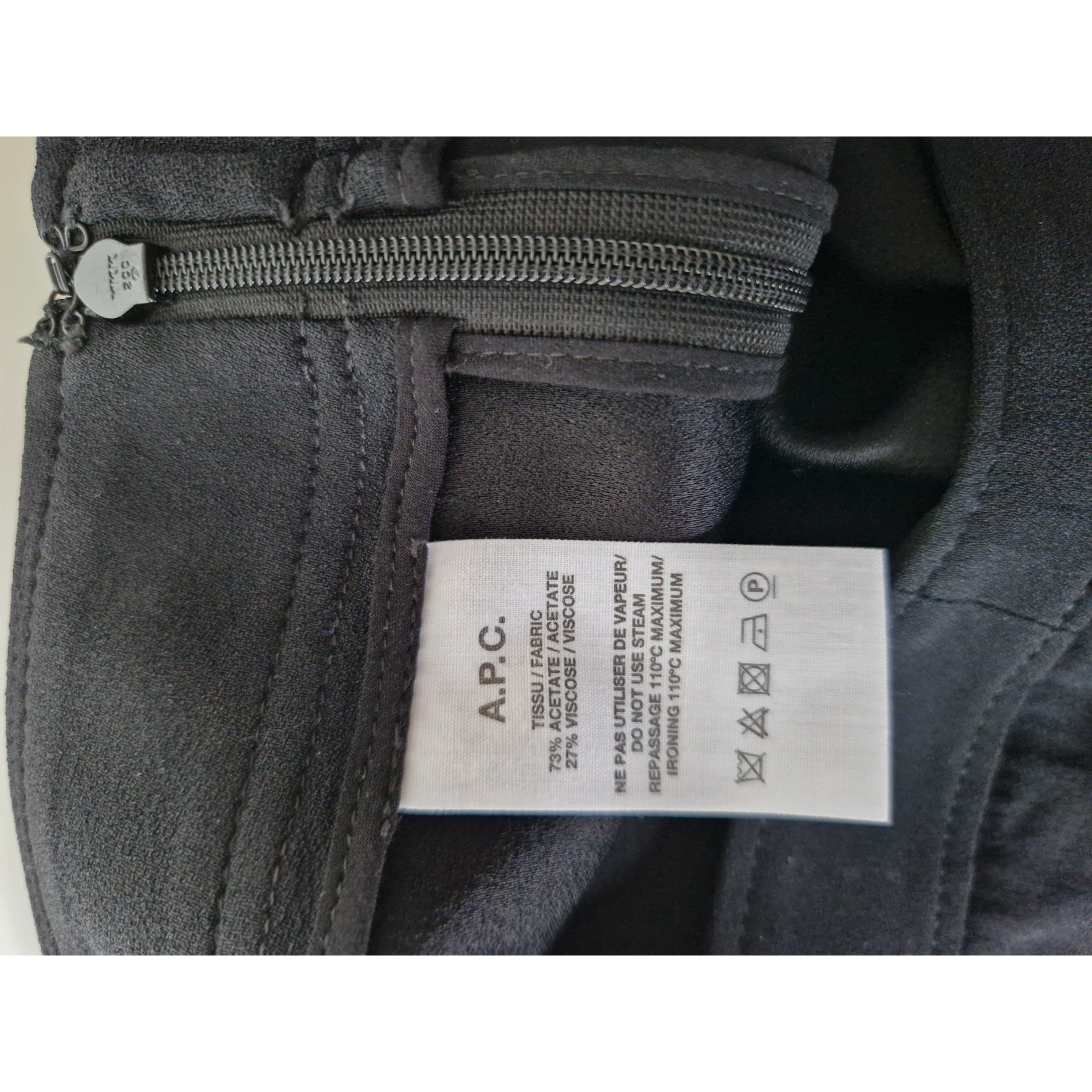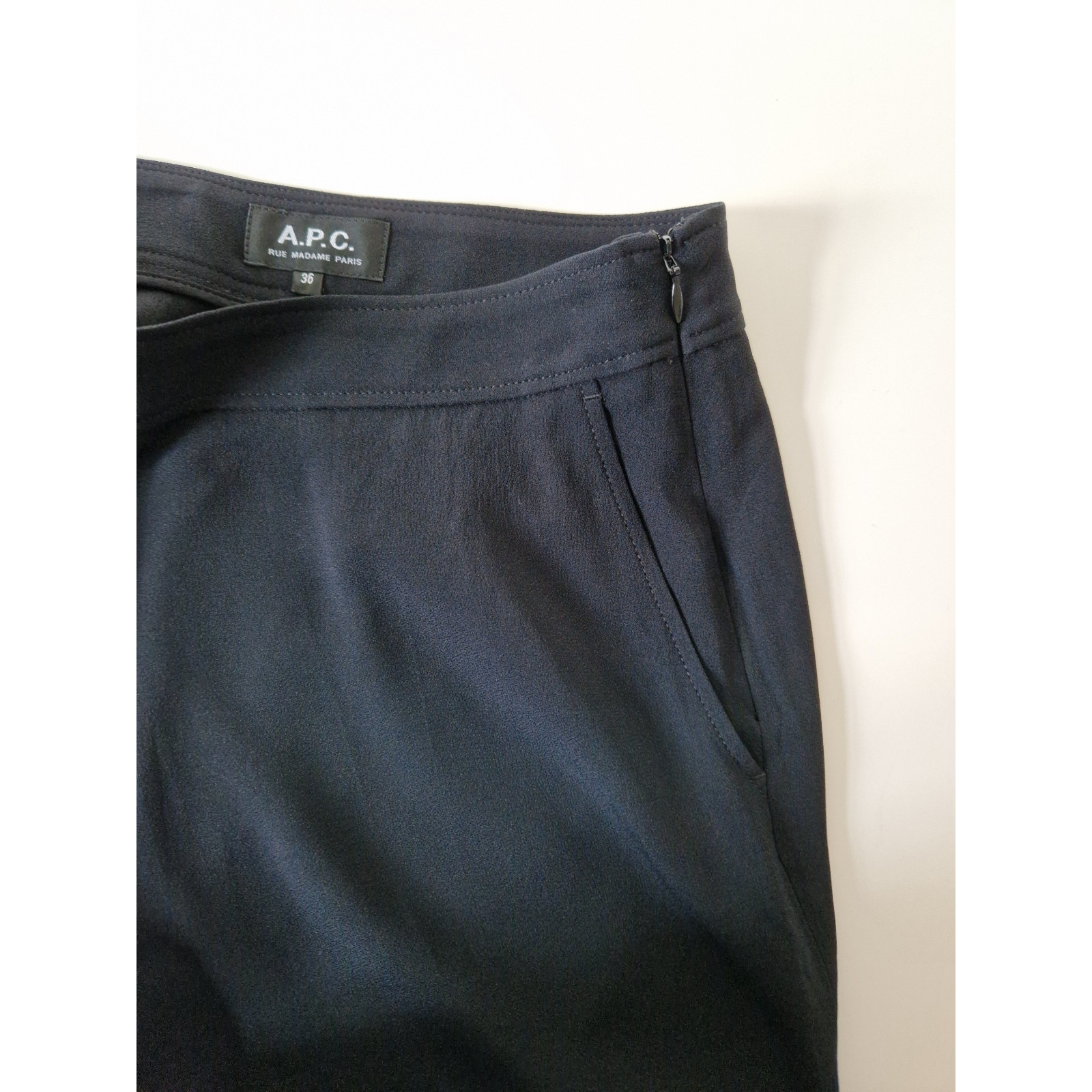Elegant, softly draping trousers from APC with two front pockets, no back pockets; side zip fastening with hook closure. Color: black. Material: 73% acetate, 27% viscose; very lightweight fabric; particularly suitable for warmer temperatures. In perfect condition (no stains, no damage), worn only a few times.