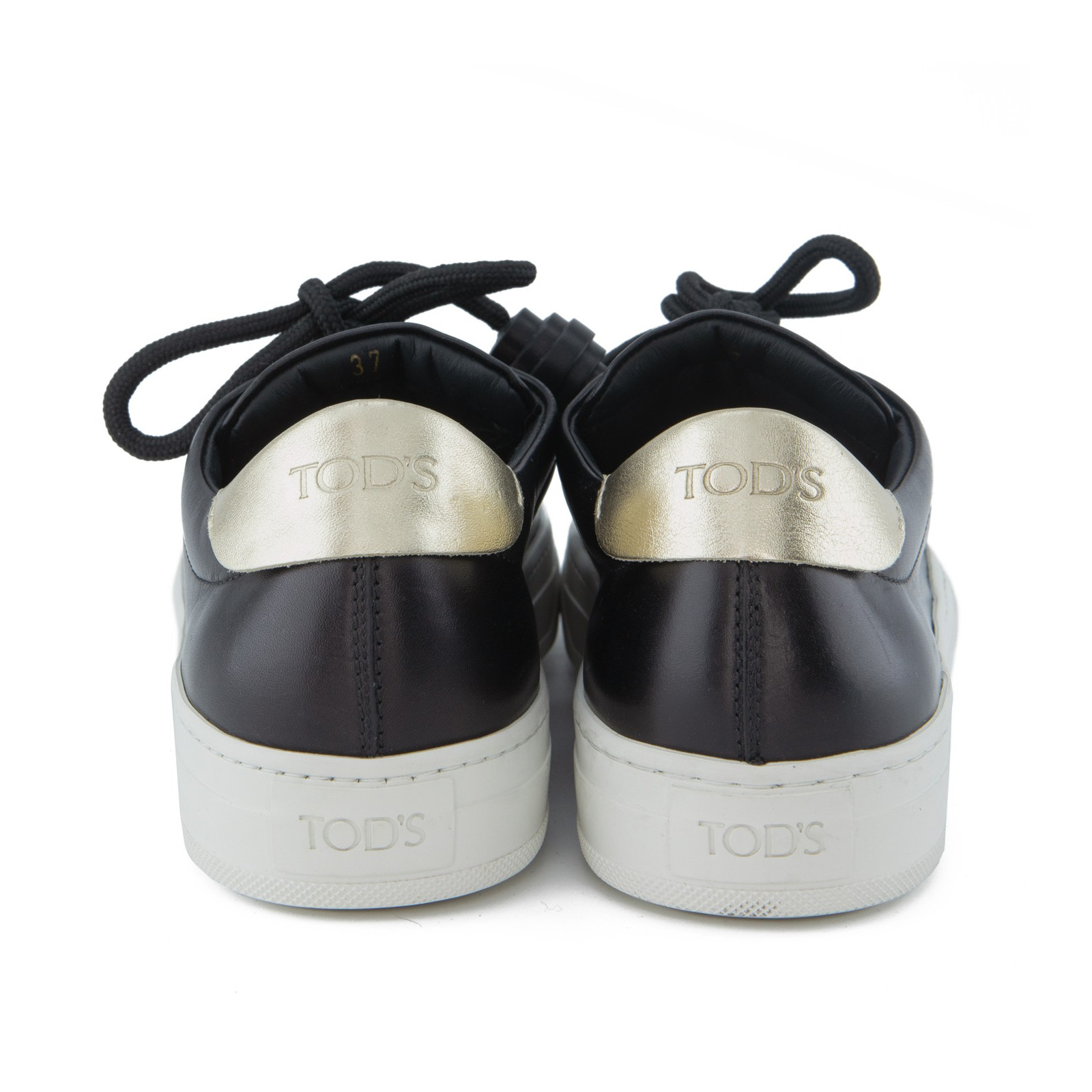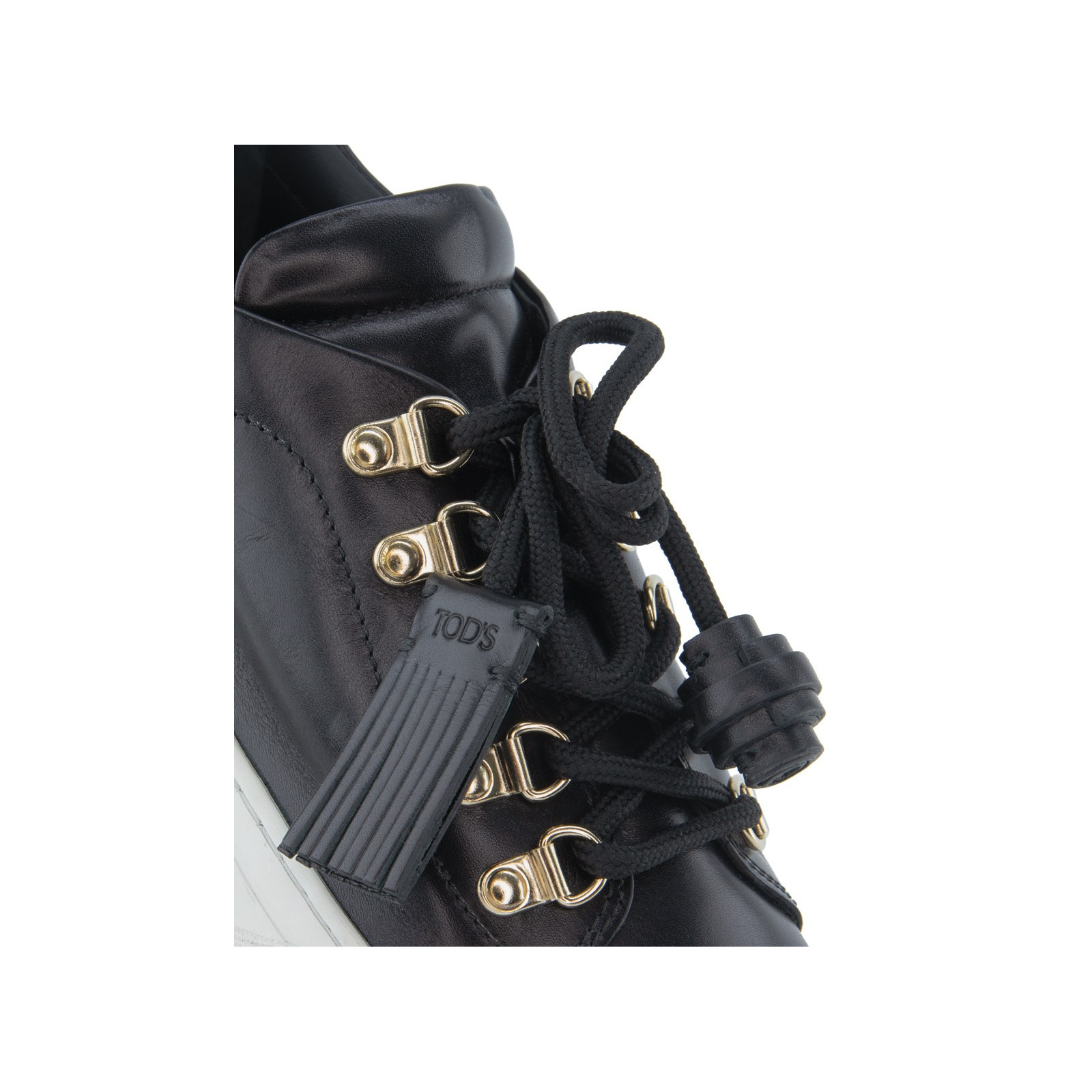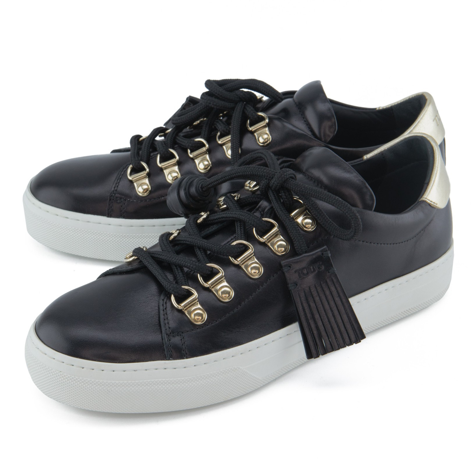 TOD`S Tassel Sneakers in black leather with gold-tone hardware.