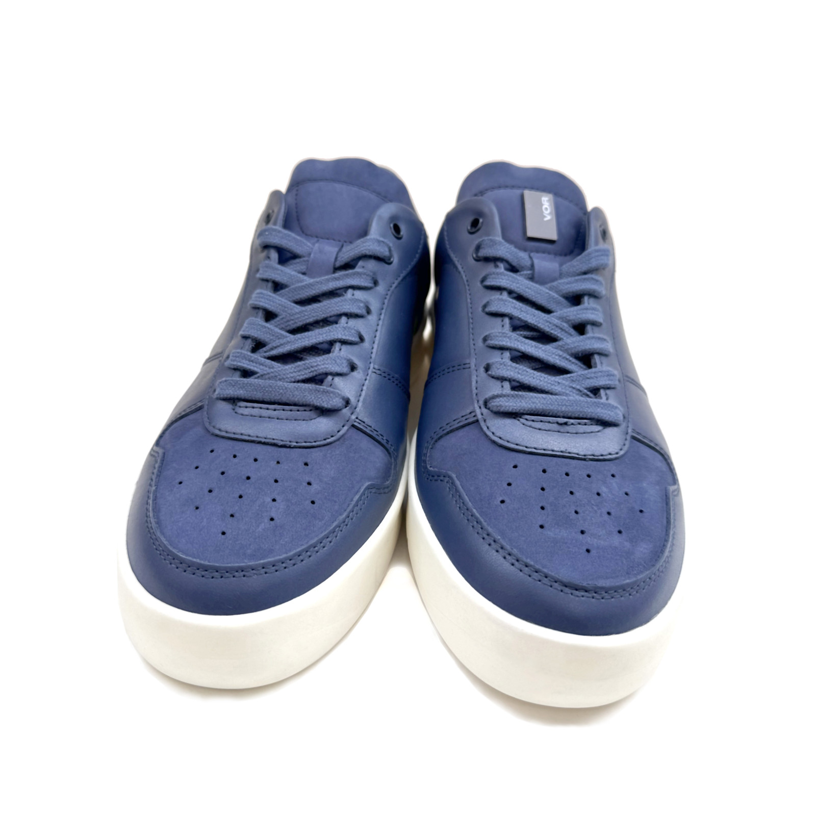 Includes shoe box, shoelaces, and protective bag Premium unisex sneaker crafted with the finest navy blue full-grain leather combined with tonal nubuck leather panels of the highest quality. Sitting on our popular dual-density TPU outsole, offering enhanced abrasion resistance, in a contrasting decent off-white tone. Featuring a breathable tonal calfskin leather lining, tonal laces, and our removable insole for durable comfort.